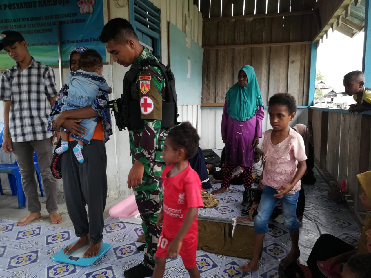 “Agar kegiatan pelayanan posyandu ini berjalan lebih maksimal, maka kami bekerja sama dengan instansi kesehatan setempat yaitu dengan Puskesmas Kamundan,” kata Dansatgas.