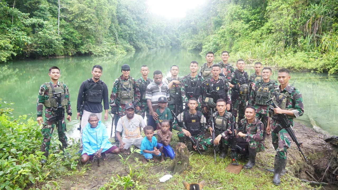 Setelah selesai melaksanakan pengecekan lokasi air terjun dan akses jalan menuju Kampung Kaitana, Bernhard pun memberikan sembako kepada masyarakat dan kepada Pos Satgas Yonif 133/YS sebagai bahan logistik yang cukup untuk beberapa hari kedepan.