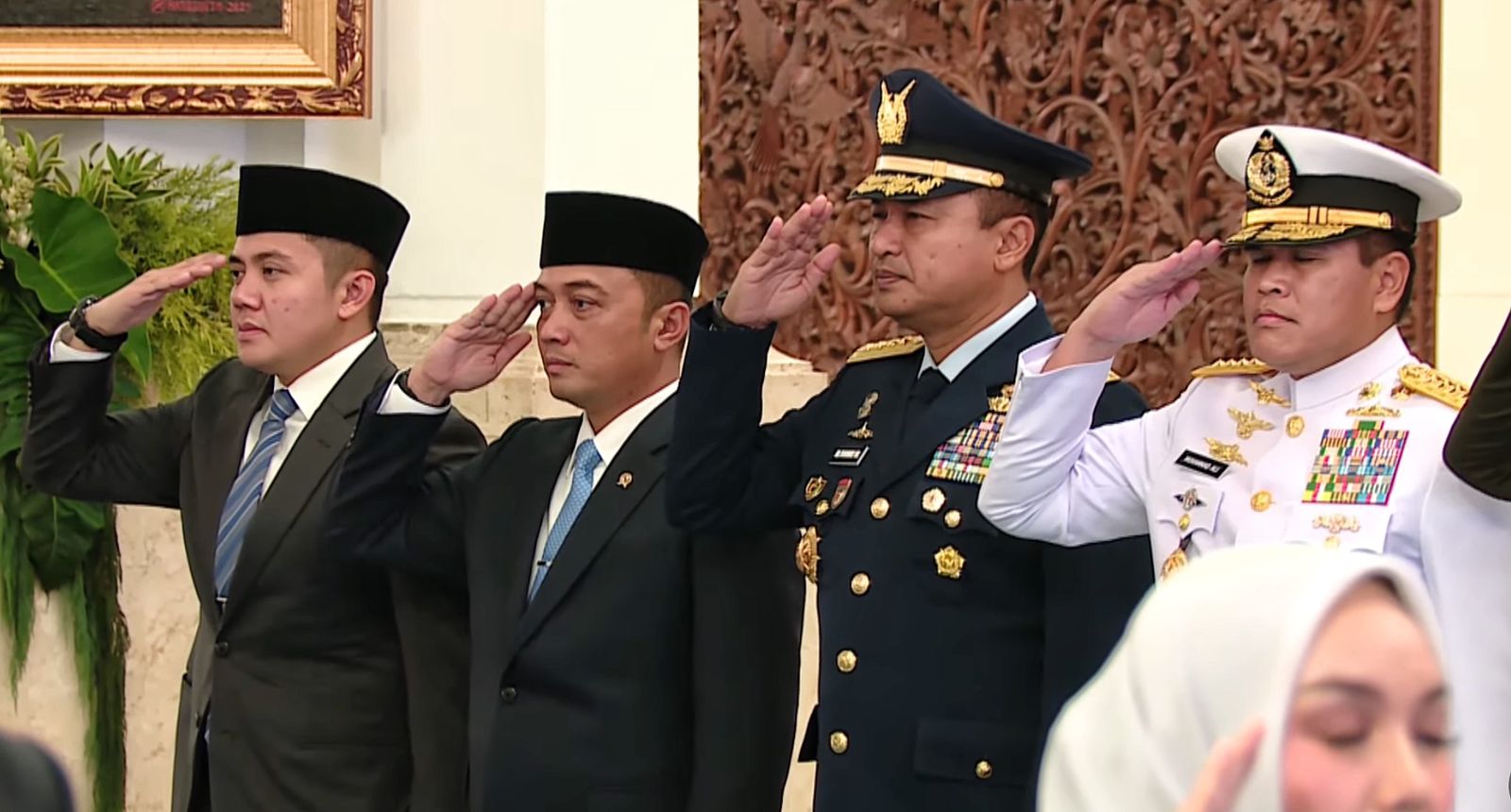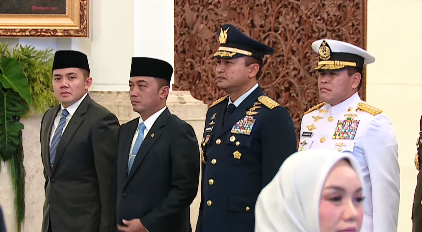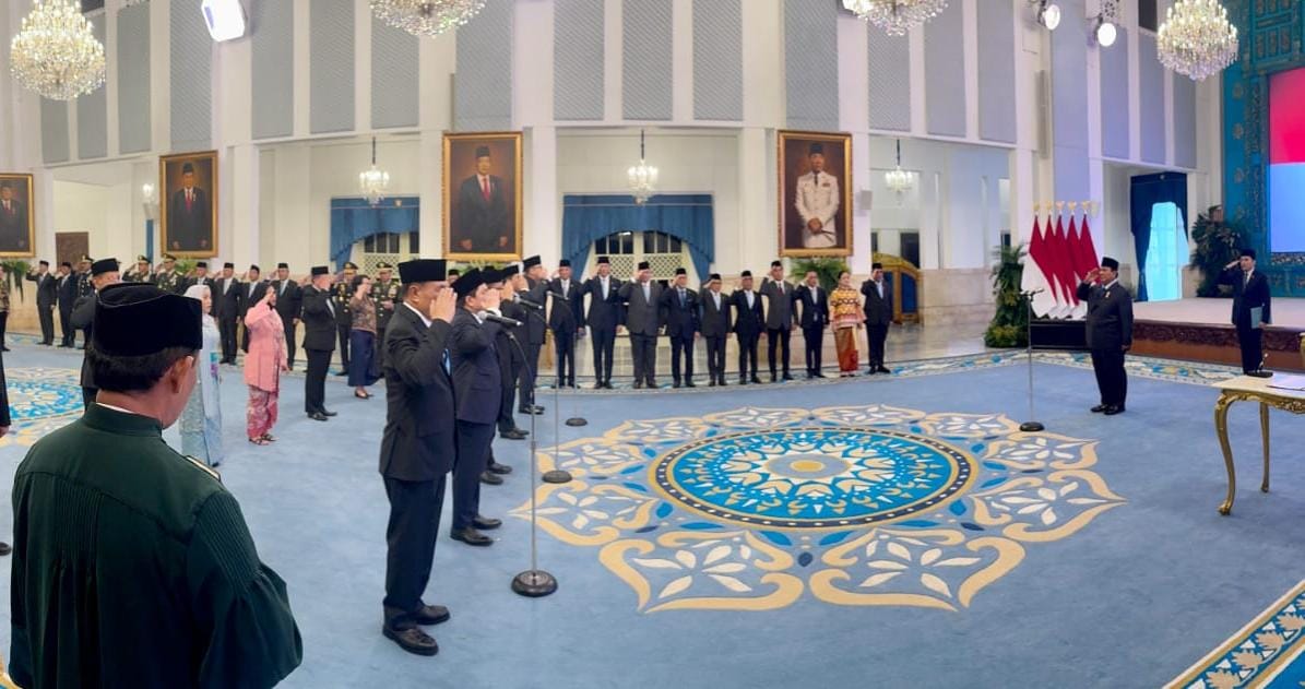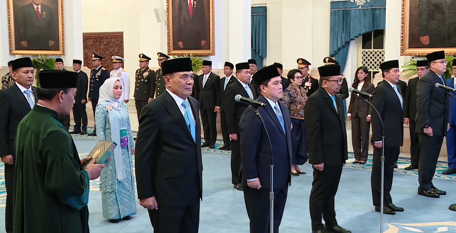 Pada kesempatan tersebut, Presiden RI melantik sejumlah pejabat baru, antara lain Djamari Chaniago sebagai Menko Polkam, Erick Thohir sebagai Menpora, Afriansyah Noor sebagai Wamen Ketenagakerjaan, Rohmat Marzuki sebagai Wamen Kehutanan, serta Farida Farichah sebagai Wamen Koperasi.