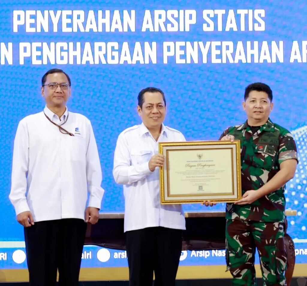 Setum TNI Terima Piagam Penghargaan dari ANRI atas Kontribusi Penyelamatan Arsip Statis