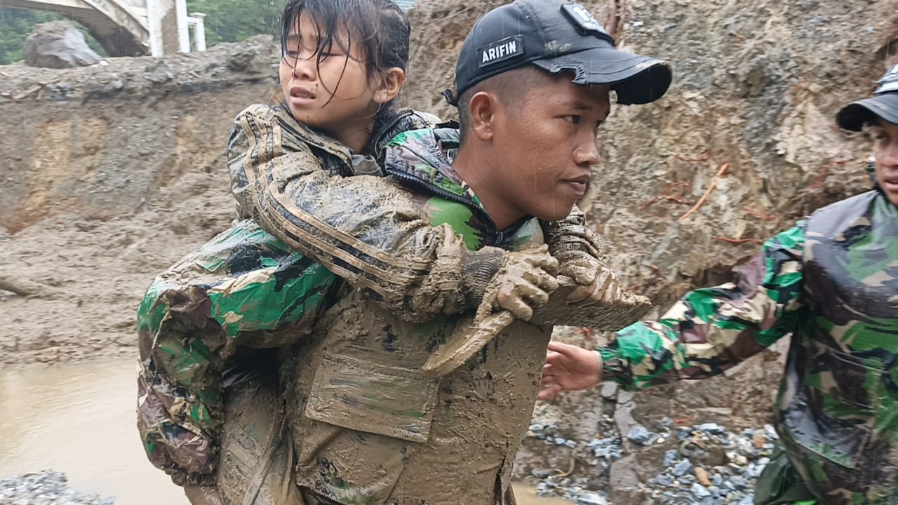 Curah hujan ekstrem membuat beberapa sungai meluap dan material longsor menutup akses jalan serta merusak rumah warga. Menyikapi kondisi yang berkembang cepat, prajurit TNI AD dari Yonif 131/BRS langsung bergerak menuju lokasi untuk membantu keluarga yang masih terjebak di rumah, mengevakuasi warga lansia dan anak-anak, serta memberikan pertolongan pertama kepada masyarakat yang mengalami luka ringan.