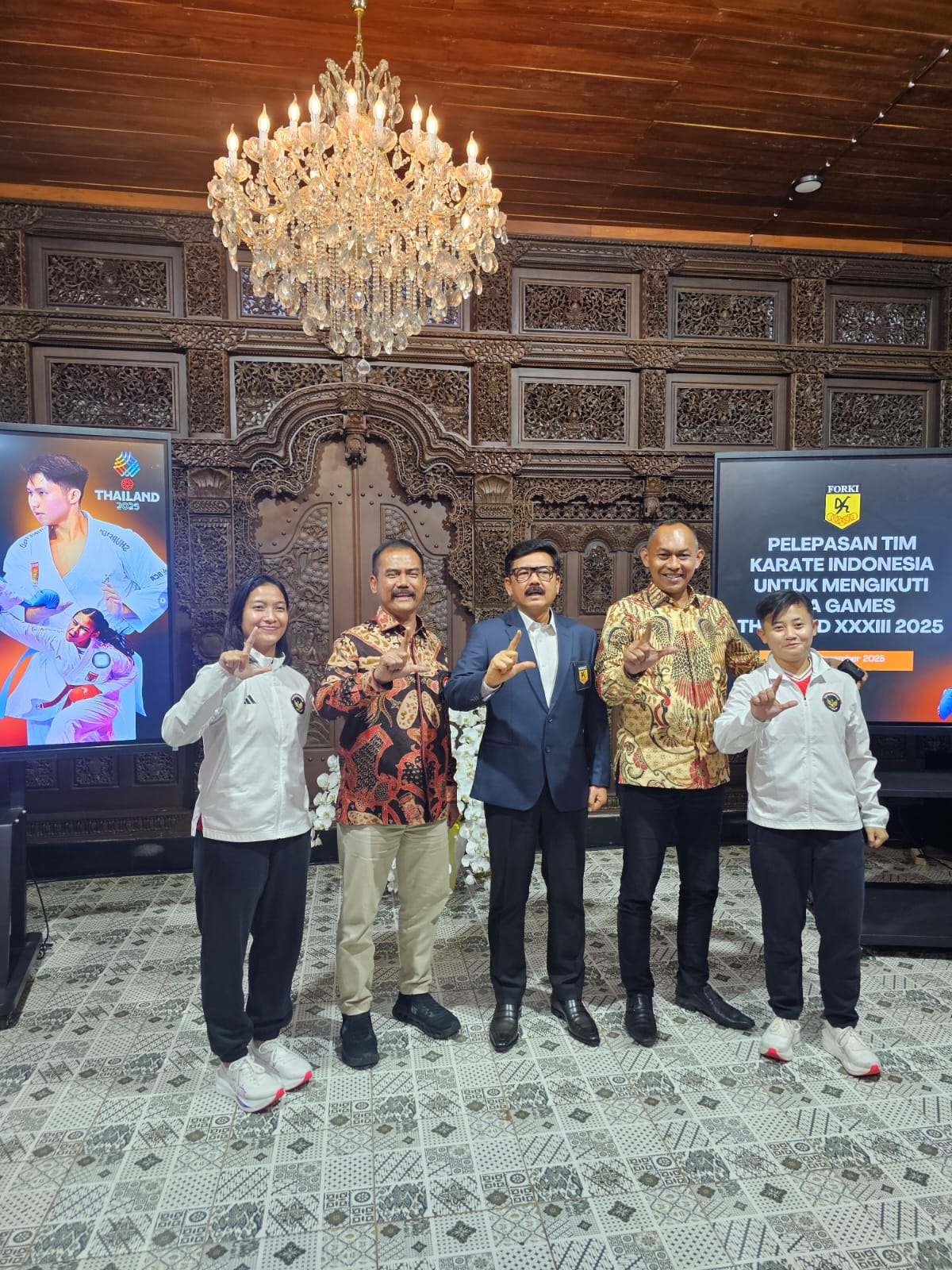 Ketua Umum PB Forki Marsekal TNI (Purn) Hadi Tjahjanto didampingi Ketua Umum PB Lemkari Mayjen TNI Marinir (Purn) Bambang Sutrisno melepas Tim Nasional Karateka. Sealin itu juga juga dihadiri Waketum bidang organisasi PB Forki , Waketum bidang Luar Negeri Cq ketua Bidang Luar negeri PB Forki, Bendahara Umum PB Forki , Ketua Umum PP Aski, Ketua Umum PB. BKC, Ketua Umum PB. Gojukai, Ketua Umum PP. KKI, ketua Umum PP. Inkai, Ketua Umum PB Inkanas, Ketua Umum PB. Inkado, Ketua Umum PB. Shindoka, Manager pelatnas Karate, wasit juri yang bertugas pada Seagames 2025 dan seluruh pelatih, atlet dan tim pendukung pelatnas Karate