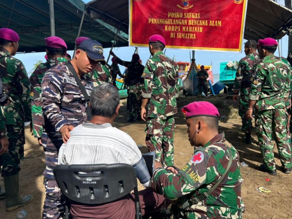 ACEH UTARA, Bhayangkara101.co.id TNI AL terus berkomitmen dalam membantu kesulitan masyarakat yang mengalami keluhan kesehatan. Satuan Tugas Penanggulangan Bencana Alam (Satgas Gulbencal) yang terdiri dari Satgas Gulbencal Korps Marinir, KRI SHS 990, Satgas Kesehatan TNI AL dan Tim Sipil dari Petualang Rescue membangun tenda Posko Kesehatan di Daerah Pengungsian Kuala Cangkoi, Kec. Lapang, Aceh, Senin (8/12/2025).