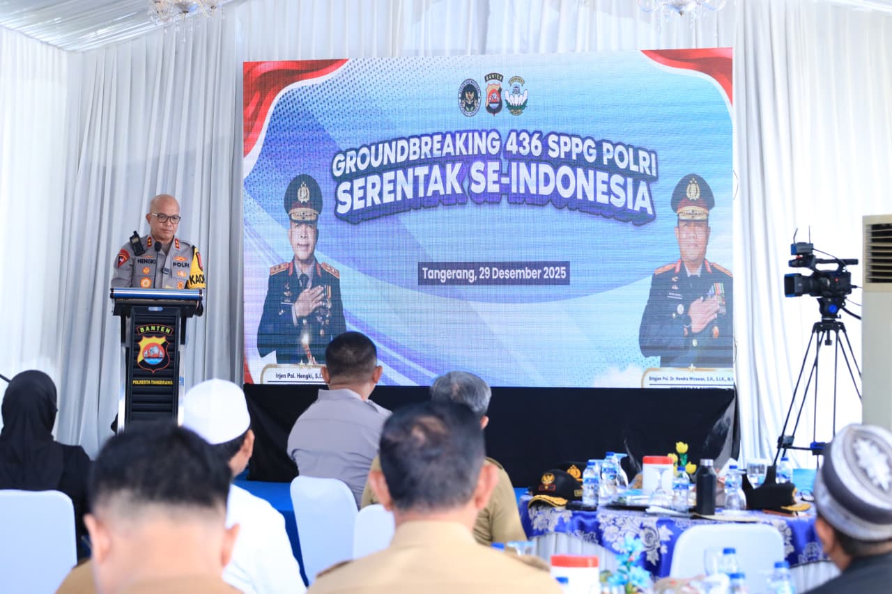 TANGERANG, MB – Kapolda Banten Irjen Pol. Hengki memimpin kegiatan groundbreaking pembangunan 49 Satuan Pelayanan Pemenuhan Gizi (SPPG) Polda Banten dan jajaran yang dilaksanakan di SPPG Pasar kemis Polda Banten, Kp. Pasar kemis, RT 002 RW 001, Desa Pasar kemis, Kecamatan Pasar kemis, Kabupaten Tangerang, Senin (29/12/2025).