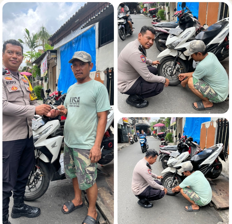 Dalam suasana yang akrab dan humanis, Bhabinkamtibmas memberikan edukasi pentingnya penggunaan kunci ganda dan gembok tambahan pada kendaraan bermotor.