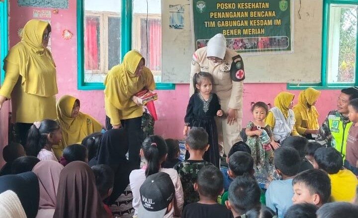 Di Desa Pantan Kuli, Tim Kesehatan memberikan layanan medis sekaligus trauma healing kepada sekitar 40 anak korban bencana melalui kegiatan bermain, bernyanyi, dan makan bersama guna memulihkan rasa aman dan keceriaan anak-anak. Dalam kesempatan tersebut, bantuan perlengkapan sekolah dari PNS Kodam Iskandar Muda turut disalurkan.