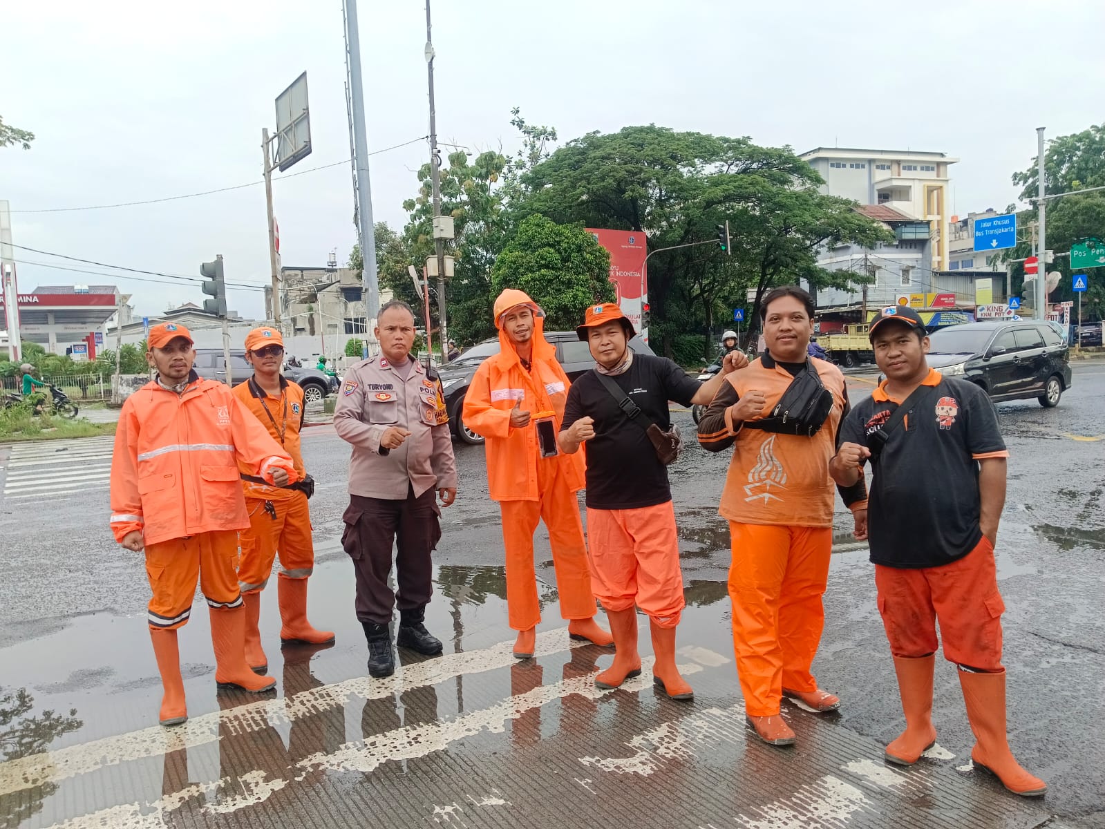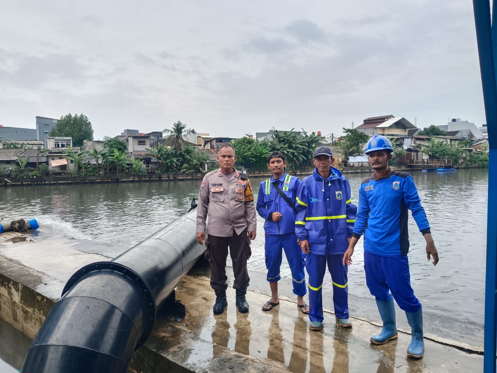 Dalam kesempatan tersebut, Aiptu Turyono berkoordinasi langsung dengan petugas pompa air, Sdr. Rizki beserta rekan, guna memonitor kesiapan dan kondisi mesin pompa air yang berfungsi untuk penanggulangan genangan, khususnya di sekitar MCD Green Garden RW 04 Kedoya Utara.