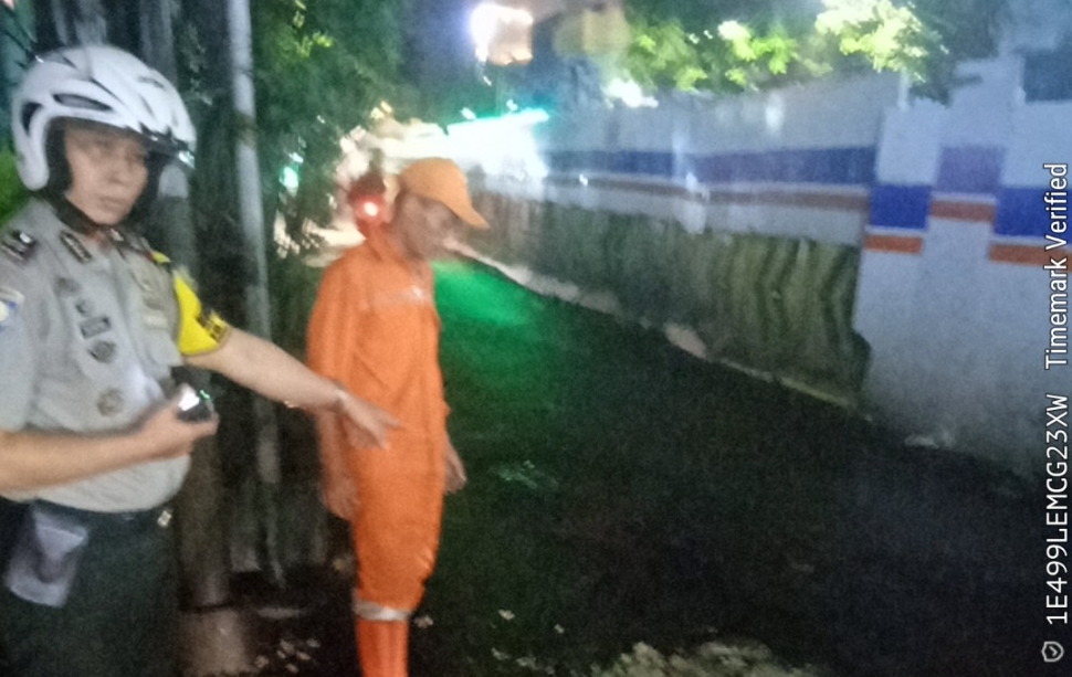 Bhabinkamtibmas Duri Selatan AIPTU Suyatno bersama PPSU Bambang Suherman terlihat bahu-membahu menutup lubang jalan dengan material seadanya, sebagai bentuk kepedulian dan tanggung jawab bersama terhadap keselamatan masyarakat.