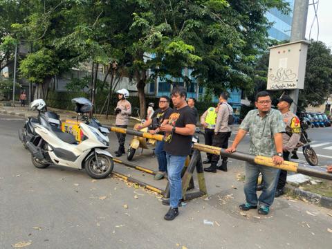 Selain melakukan pemantauan situasi, petugas juga berinteraksi dengan masyarakat dan pengguna jalan untuk memastikan aktivitas masyarakat berjalan dengan aman dan nyaman.