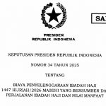 JAKARTA, Bhayangkara101.co.id – Pemerintah menerbitkan Keputusan Presiden Republik Indonesia (Keppres) Nomor 34 Tahun 2025 tentang Biaya Penyelenggaraan Ibadah Haji Tahun 1447 Hijriah/2026