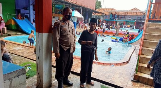 Cegah Penularan Covid-19 Kanit Binmas Polsek Kronjo Berikan Himbauan Prokes Di Taman Wisata Air